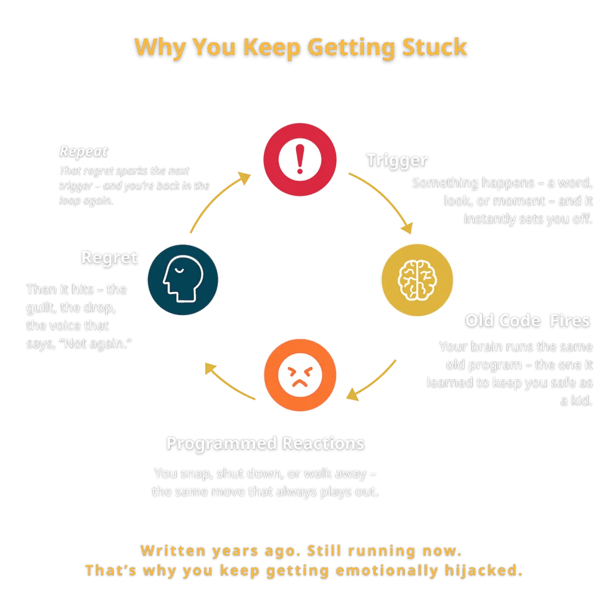 That’s why you overreact, freeze, avoid hard conversations, or beat yourself up afterward. Not because you’re weak – but because your programming took over.